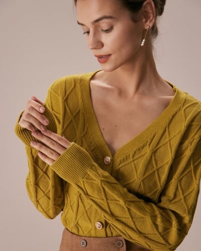 The Ginger V Neck Argyle Ribbed Cardigan