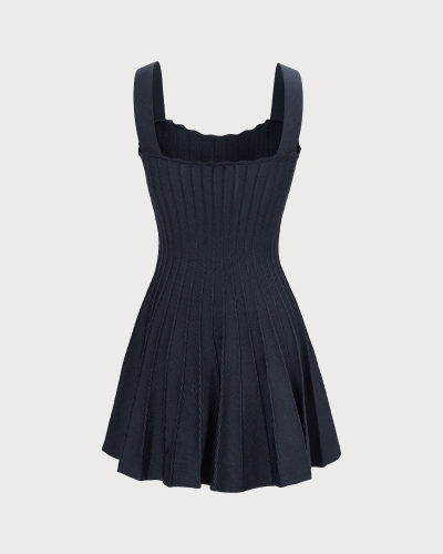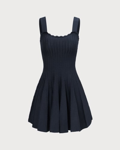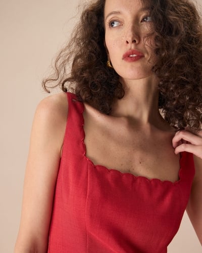 The Red Square Neck Scalloped Mini Dress