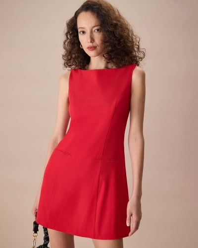 The Red Boat Neck Sleeveless Mini Dress