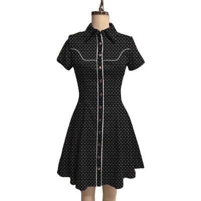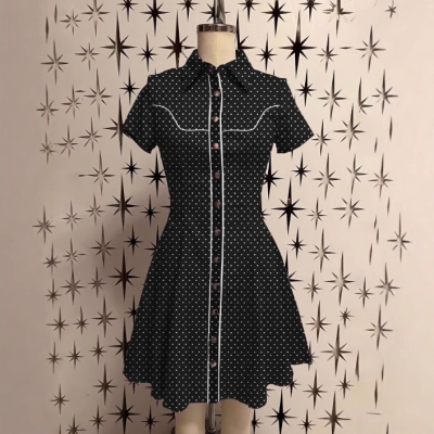 Fashion Slim Fit Polka Dot Lapel Mini Dress